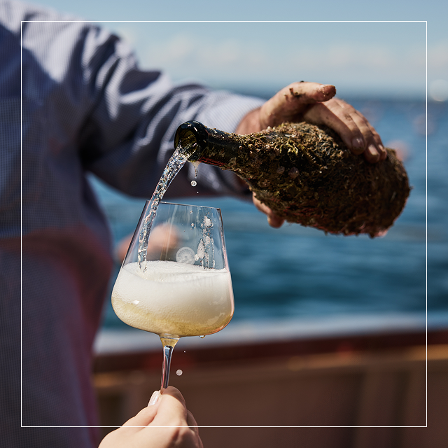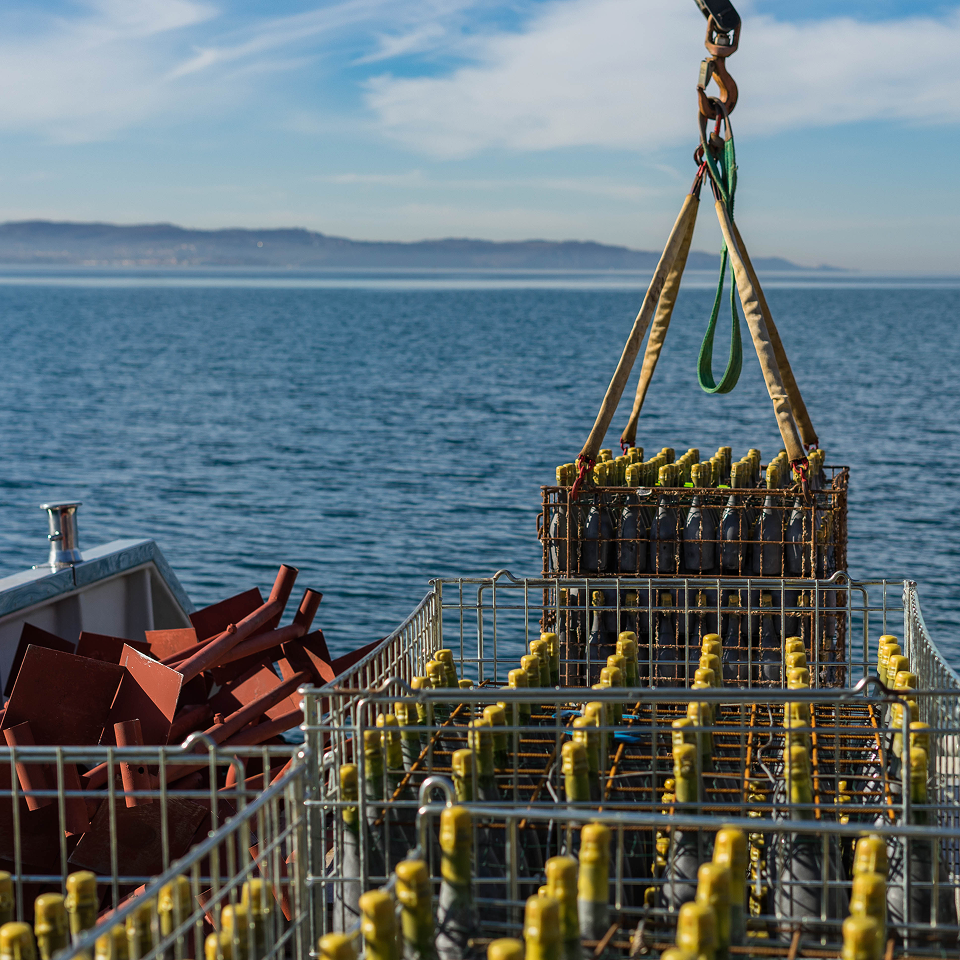 Na globini 20 metrov pod gladino je raven svetlobe izjemno nizka. To je ključno, saj UV-žarki lahko poškodujejo molekule v vinu. Temà morskih globin varuje strukturo, aromo in energijo našega penečega vina.