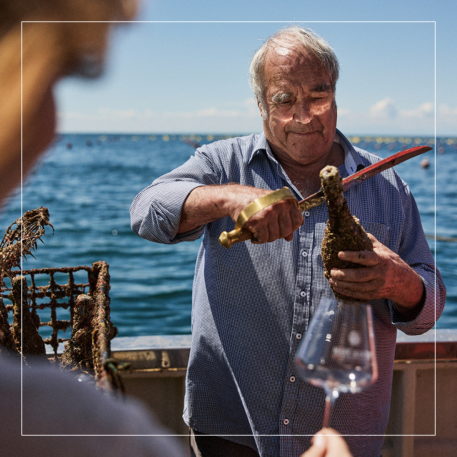 Školjke se pritrdijo na steklenice in vsako spremenijo v edinstveno umetniško delo narave. Morska patina je del identitete Mare Santo in eden od razlogov, zakaj je to peneče vino tako prepoznavno.